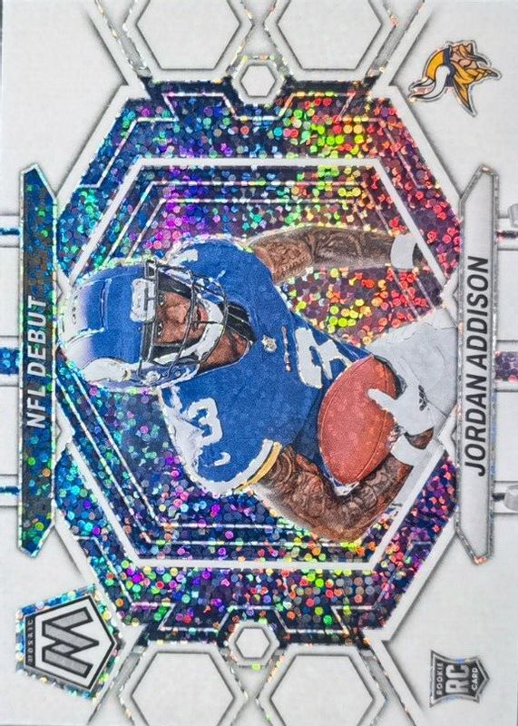 2023 White Sparkle Mosaic Jordan Addison NFL Debut Rookie Card Minnesota Vikings