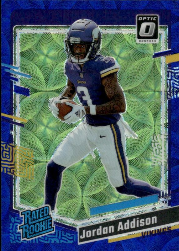 2023 Donruss Optic Jordan Addison Blue Scope Prizm Rated Rookie #271 Vikings
