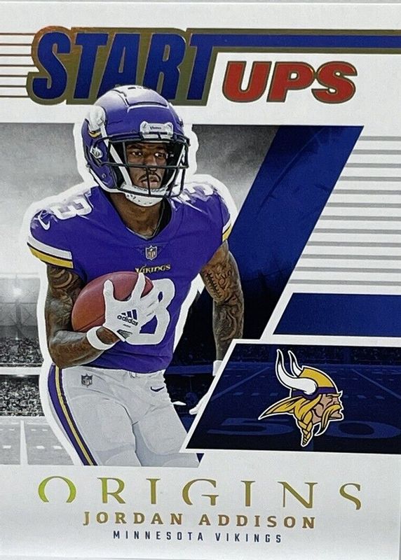 The Jordan Addison 2023 Origins #SU-5 Start Ups Rookie card in Raw condition has not changed in price in the last 30 days and was last sold for $1.00 .