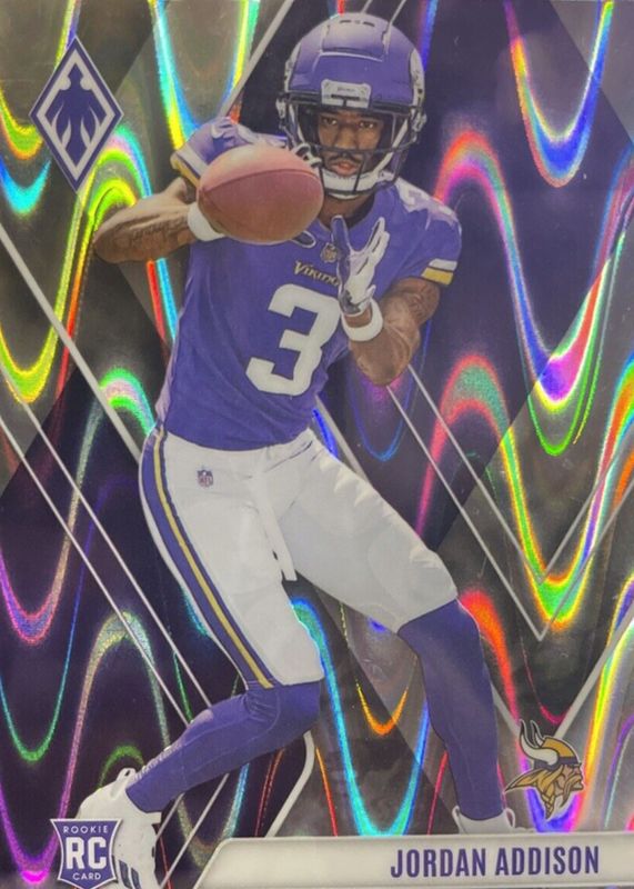 This card is 1 of 54 Jordan Addison's card variations in the 2023 Phoenix set being tracked by Sports Card Investor, including Base, Color Burst, Silver, Fire Burst /340, and Red /250.