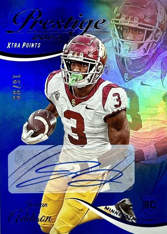 2023 Prestige Football Jordan Addison Xtra Points Blue Auto #/99 Vikings SP