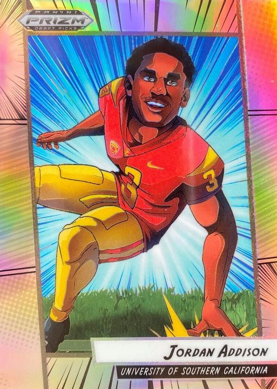 The Jordan Addison 2023 Prizm Draft Picks #MGA-8 Manga /(SSP) Rookie card in Raw condition has not changed in price in the last 30 days and was last sold for $72.11 .