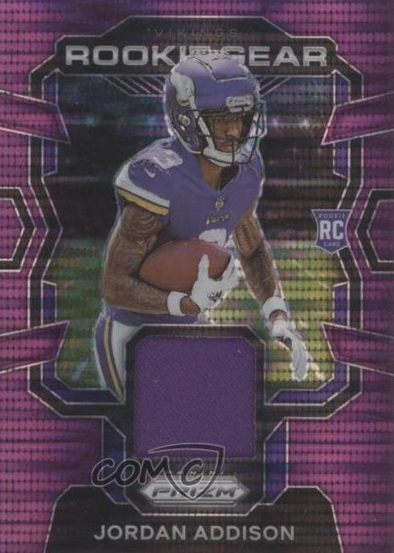 2023 Prizm Jordan Addison RC Rookie Gear Patch Purple Pulsar Team Color Match