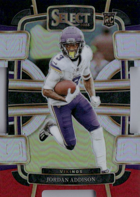 The Jordan Addison 2023 Select #66 Concourse Black & Red Die-Cut Rookie card in Raw condition has moved up $0.80 (+80.8%) in the last 30 days and was last sold for $1.79 .