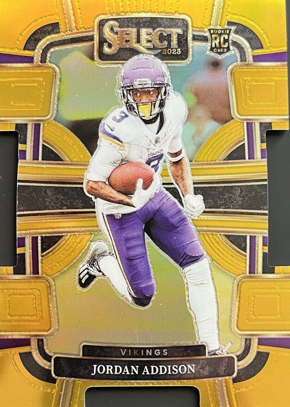 Best Prices Available For Sale of Jordan Addison 2023 Select #66 Concourse Gold Die-Cut /10
