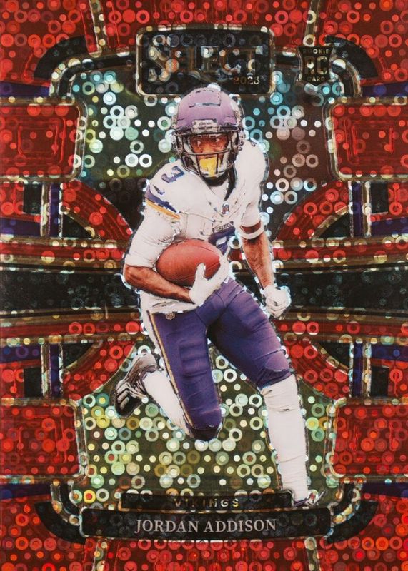 Jordan Addison 2023 Select #66 Concourse Red Disco /49 Rookie RAW Price Guide
