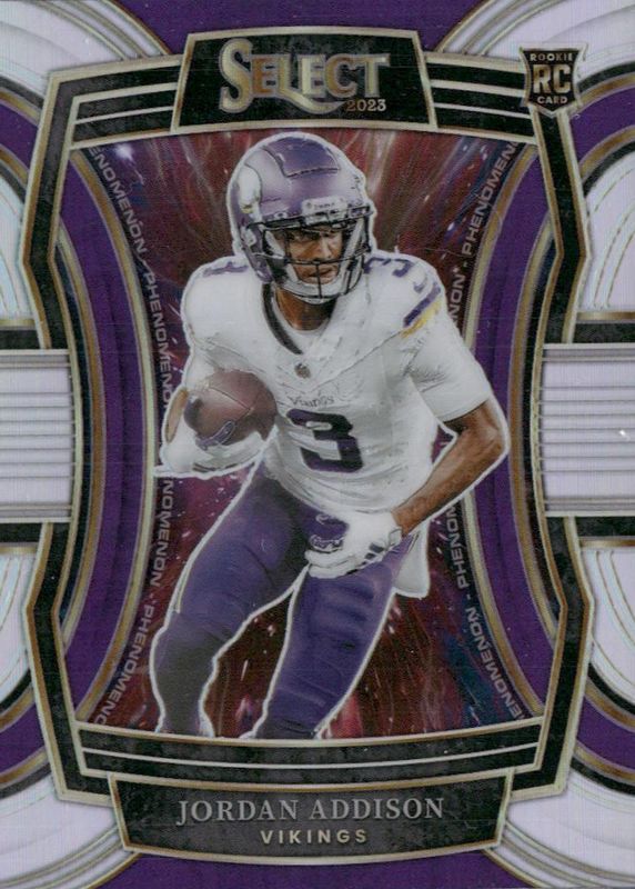 The Jordan Addison 2023 Select #PH-JAD Phenomenon - Silver Rookie card in Raw condition has moved down -$1.24 (-41.5%) in the last 30 days and was last sold for $1.75 .