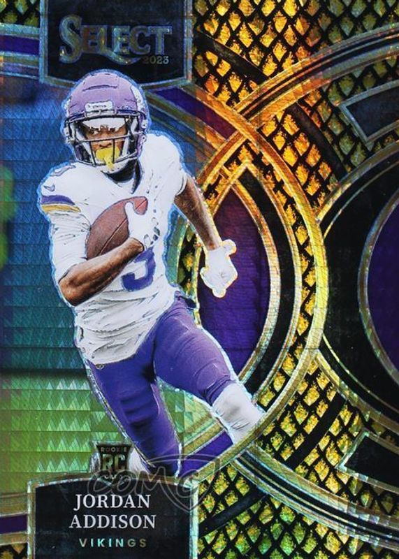 This card is 1 of 219 Jordan Addison's card variations in the 2023 Select set being tracked by Sports Card Investor, including Club Level, Concourse, Field Level, Premier Level, and Suite Level.