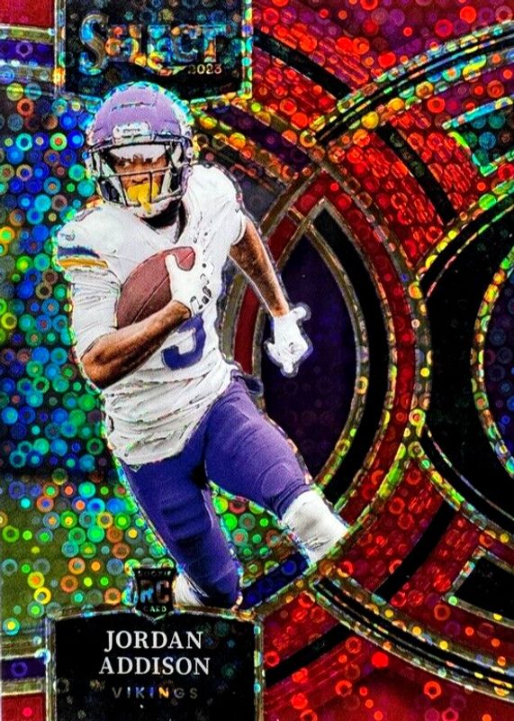 2023 Select Jordan Addison Red Disco /49 RC Premier Level #66 Vikings Concourse