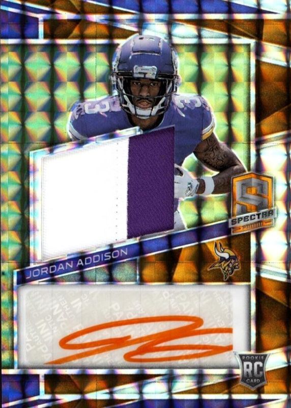 Jordan Addison 2023 Spectra #220 Rookie Patch Auto - Neon Orange /15 RAW Price Guide