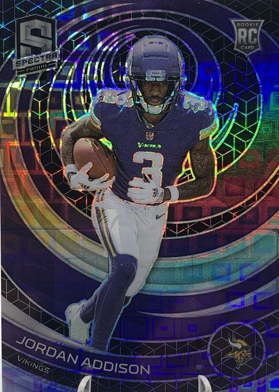 The Jordan Addison 2023 Spectra #129 Spectris /30 Rookie card in Raw condition has not changed in price in the last 30 days and was last sold for $15.50 .