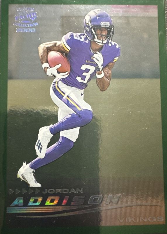 The Jordan Addison 2023 Zenith #14 2000 Pacific Crown Collection - Emerald /5 Rookie card in Raw condition has not changed in price in the last 30 days and was last sold for $30.00 .