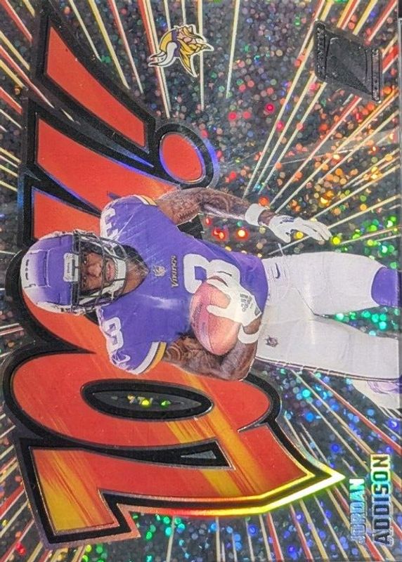 This card is 1 of 27 Jordan Addison's card variations in the 2023 Zenith set being tracked by Sports Card Investor, including 2000 Pacific Crown Collection, Behind the Numbers, Behind the Numbers - Blue, Behind the Numbers - Red, and Behind the Numbers - Silver.