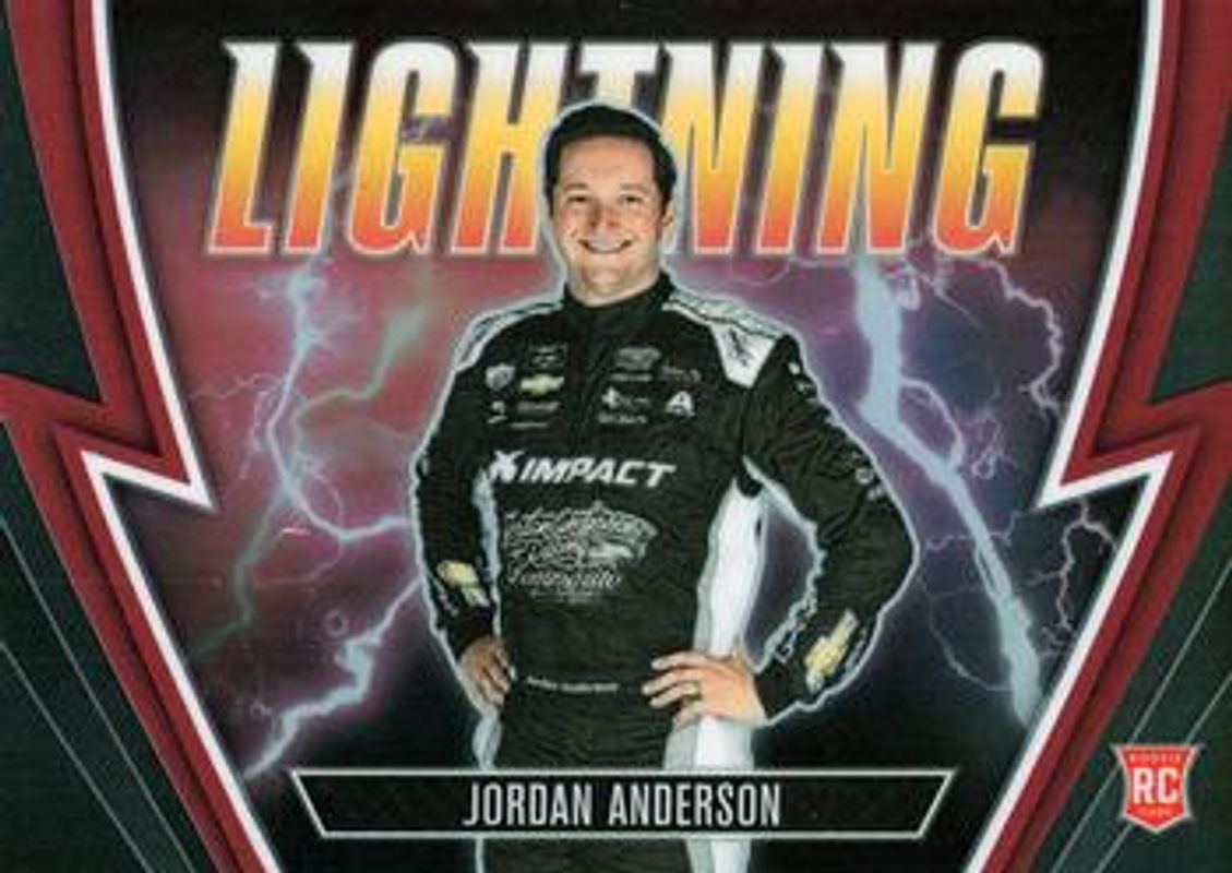 The Jordan Anderson 2023 Chronicles NASCAR #8 Lightning - Red /99 Rookie card is 1 of 85 Jordan Anderson's card variations in the 2023 Chronicles NASCAR set being tracked by Sports Card Investor, including Base, Blue /199, Red /99, Purple /25, and Gold /10.