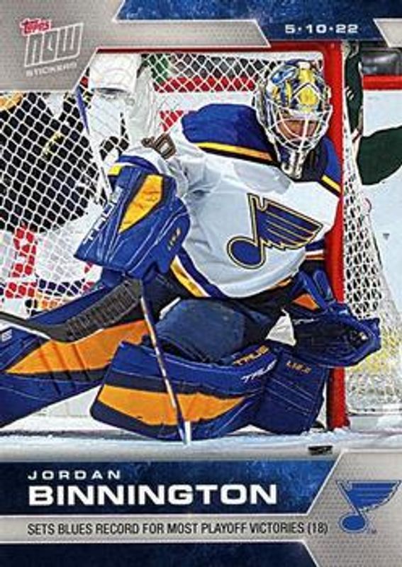 Jordan Binnington's Hockey cards are available in at least 90 sets. Jordan Binnington's biggest 7-day price movers are 2021 Topps NOW NHL Stickers #465 Base, 2021 Topps NOW NHL Stickers #465 Ice /10, and 2014 Upper Deck Ultimate Collection #DT-JB Debut Threads Patch /100.