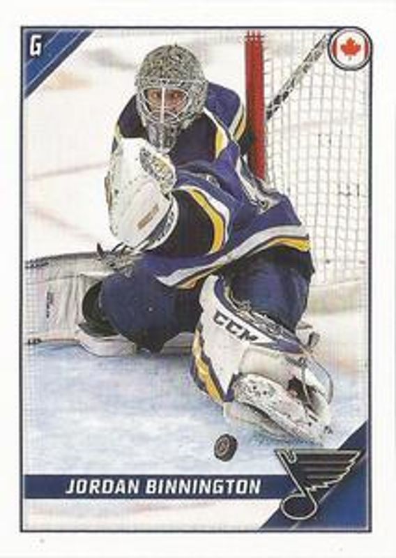 The Jordan Binnington 2019 Topps Stickers #425 Base card is 1 of 2 Jordan Binnington's card variations in the 2019 Topps Stickers set being tracked by Sports Card Investor, including Base.
