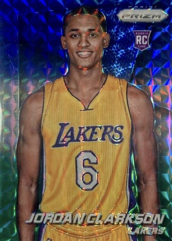 This card is 1 of 18 Jordan Clarkson's card variations in the 2014 Prizm set being tracked by Sports Card Investor, including Base, Blue Mojo, Blue Wave, Green, and Red White Blue Pulsar.