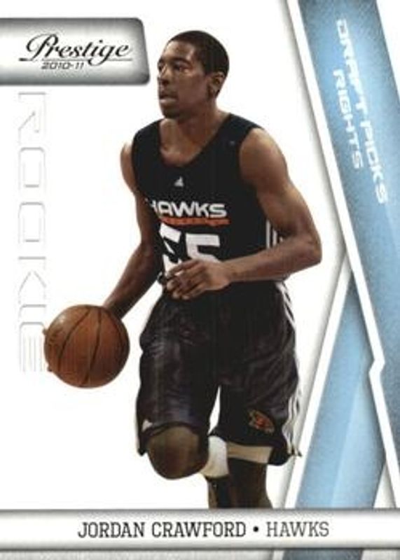The Jordan Crawford 2010 Prestige #177 Draft Picks - Light Blue /999 card is 1 of 31 Jordan Crawford's card variations in the 2010 Prestige set being tracked by Sports Card Investor, including #177 Base, #236 Bonus Shots Orange /499, #177 Bonus Shots Orange /499, #177 Bonus Shots Gold /249, and #236 Bonus Shots Gold /249.