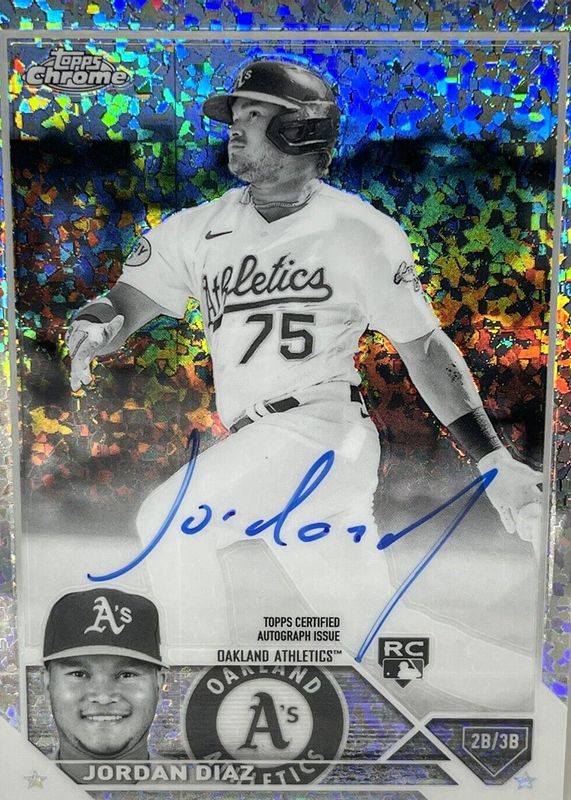Auctions Ending Soon for Jordan Diaz 2023 Topps Chrome #RA-JDI Rookie Autographs - Black & White Mini-Diamond Refractor RAW
