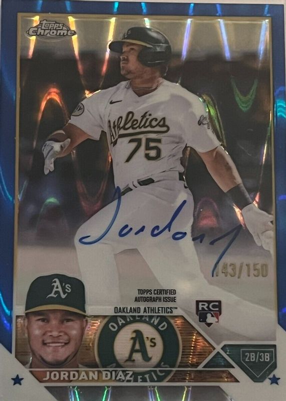 2023 Topps Chrome Jordan Diaz Blue RayWave Refractor RC Rookie Auto #146/150 A's