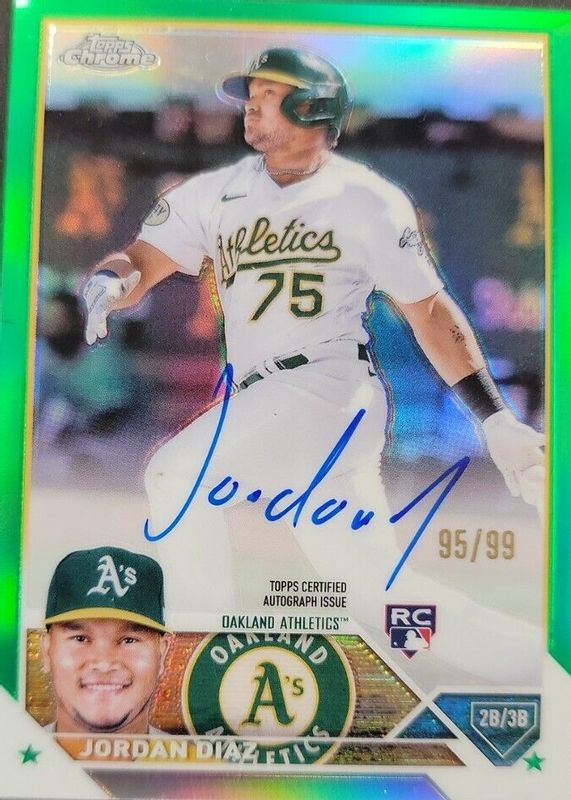 2023 Topps Chrome Jordan Diaz RC Green Refractor Auto #'d 74/99 Oakland Athletic
