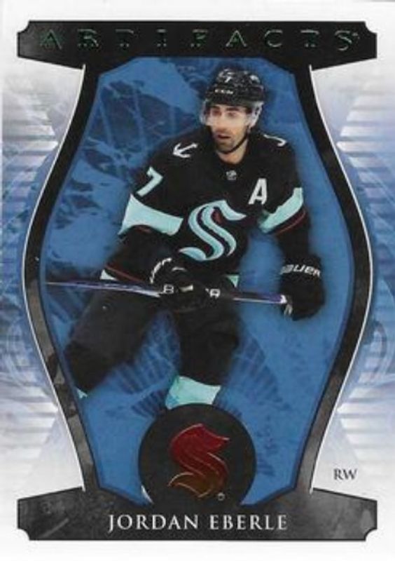 The Jordan Eberle 2023 Upper Deck Artifacts #96 Polychrome /65 card is 1 of 23 Jordan Eberle's card variations in the 2023 Upper Deck Artifacts set being tracked by Sports Card Investor, including Base /999, Turquoise, Ruby /499, Copper /299, and Royal Blue /199.