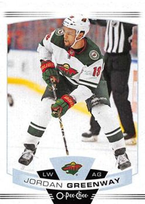 The Jordan Greenway 2019 O-Pee-Chee #253 Base card is 1 of 8 Jordan Greenway's card variations in the 2019 O-Pee-Chee set being tracked by Sports Card Investor, including Blue Border, Gold Border, Red Border, Red Border Blank Back, and Retro.