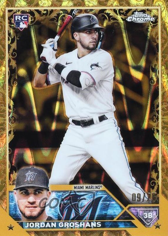JORDAN GROSHANS 2023 TOPPS CHROME GILDED ROOKIE GOLD RAYWAVE RC /25 Q0234