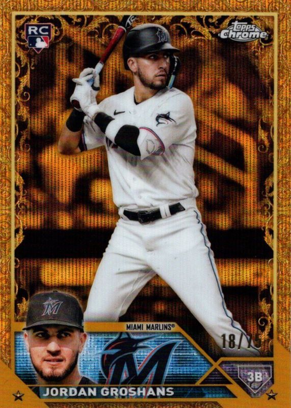 Jordan Groshans 2023 Topps Chrome Gilded Gold Wave Refractor RC 12/75 Marlins