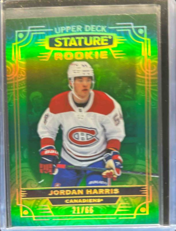 The Jordan Harris 2022 Upper Deck Stature #157 Photo Variant Green /66 Rookie card is 1 of 48 Jordan Harris' card variations in the 2022 Upper Deck Stature set being tracked by Sports Card Investor, including Base /399, Green /99, Photo Variant /99, Red /75, and Design Variant /65.