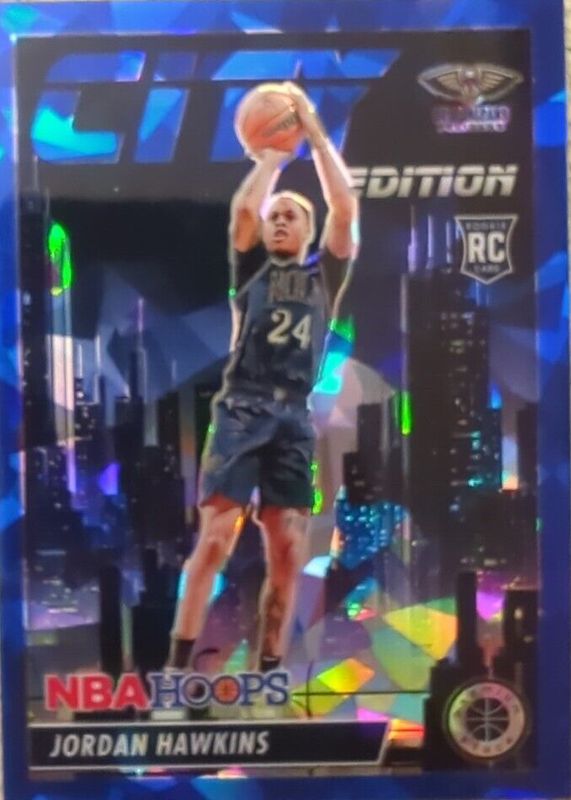 The Jordan Hawkins 2023 Hoops Premium Stock #7 City Edition - Blue Ice /99 Rookie card in Raw condition has not changed in price in the last 30 days and was last sold for $15.00 .