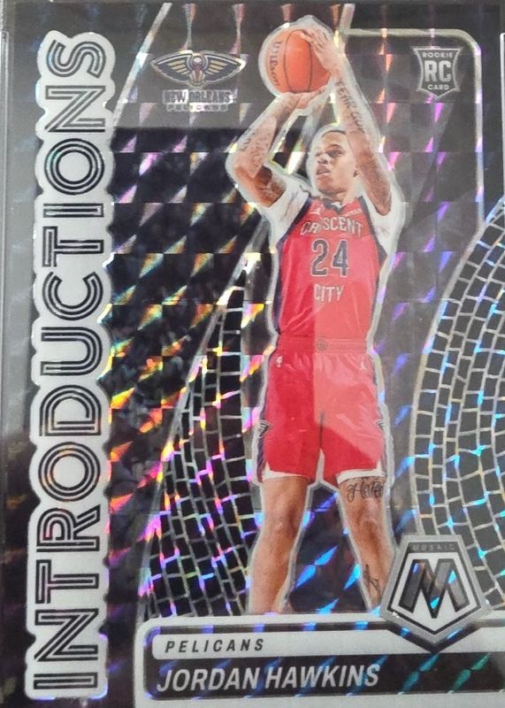 This card is 1 of 111 Jordan Hawkins' card variations in the 2023 Mosaic set being tracked by Sports Card Investor, including #243 Base, #253 NBA Debut, #243b Fast Break, #243 Fast Break, and #243 Green.