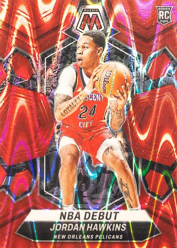 JORDAN HAWKINS 2023 24 MOSAIC RED SEISMIC PRIZM NBA DEBUT ROOKIE RC /299