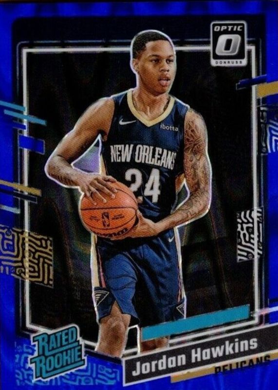 JORDAN HAWKINS 2023-24 Donruss Optic #238 Blue Seismic Holo Rated Rookie RC /249