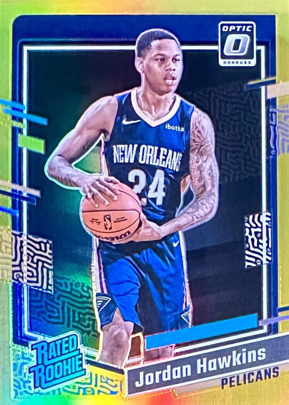 This card is 1 of 79 Jordan Hawkins' card variations in the 2023 Optic set being tracked by Sports Card Investor, including Base, Blue Velocity, Checkerboard, Choice Red & Green, and Fast Break.