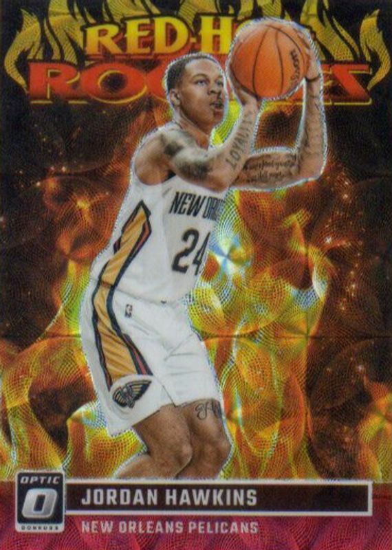 The Jordan Hawkins 2023 Optic #5 Red Hot Rookies - International Red & Gold /99 card in Raw condition has not changed in price in the last 30 days and was last sold for $3.32 .