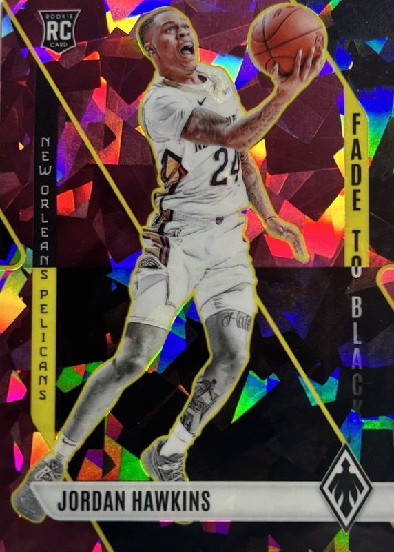 The Jordan Hawkins 2023 Phoenix #24 Fade to Black - Pink Ice /25 Rookie card in Raw condition has not changed in price in the last 30 days and was last sold for $3.00 .