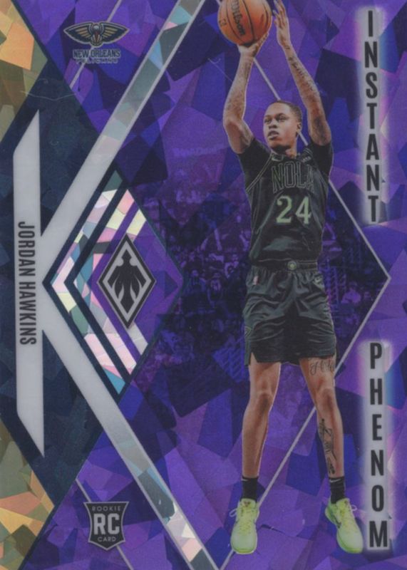 The Jordan Hawkins 2023 Phoenix #14 Instant Phenom - Purple Ice /25 Rookie card in Raw condition has not changed in price in the last 30 days and was last sold for $9.00 .