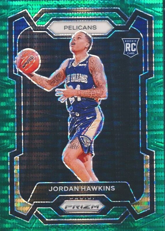This card is 1 of 79 Jordan Hawkins' card variations in the 2023 Prizm set being tracked by Sports Card Investor, including Base, Blue Wave, Choice Blue Yellow Green, Fast Break, and Green.