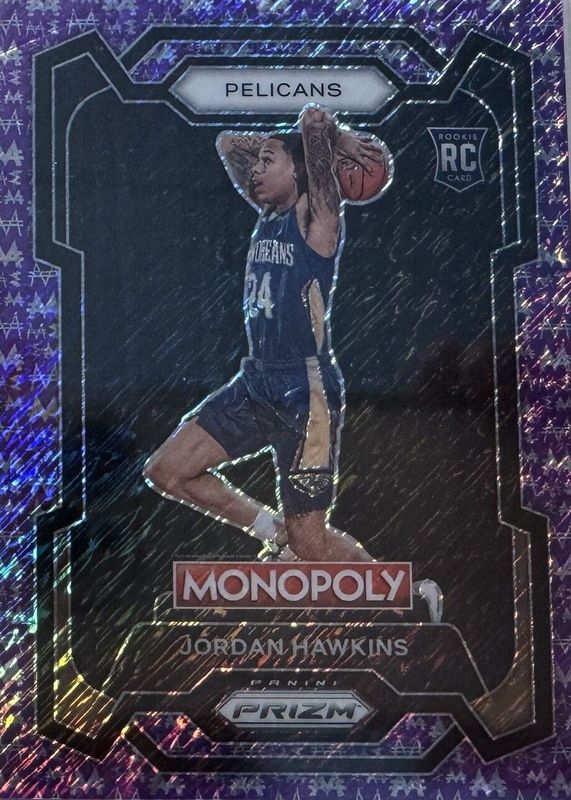 2023-24 Prizm Monopoly Jordan Hawkins RC Purple Millionaire Shimmer /50 Pelicans