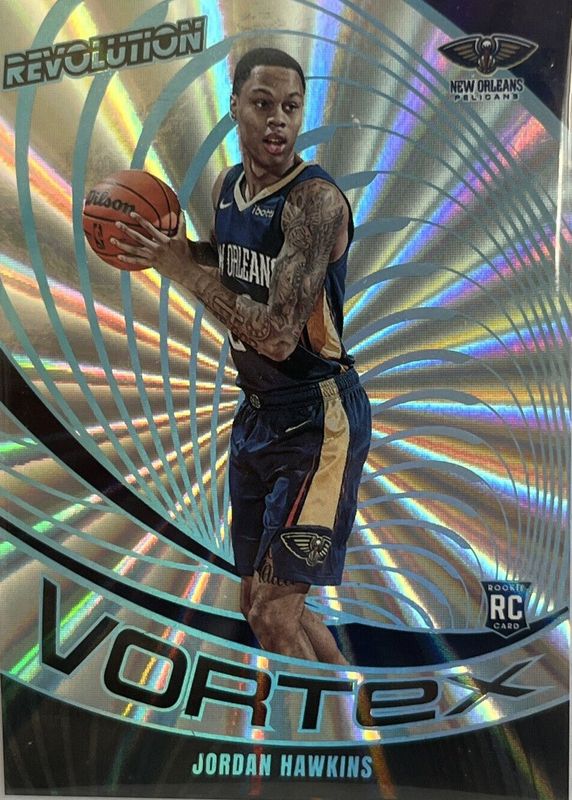 The Jordan Hawkins 2023 Revolution #7 Vortex - Sunburst /75 Rookie card in Raw condition has not changed in price in the last 30 days and was last sold for $3.36 .