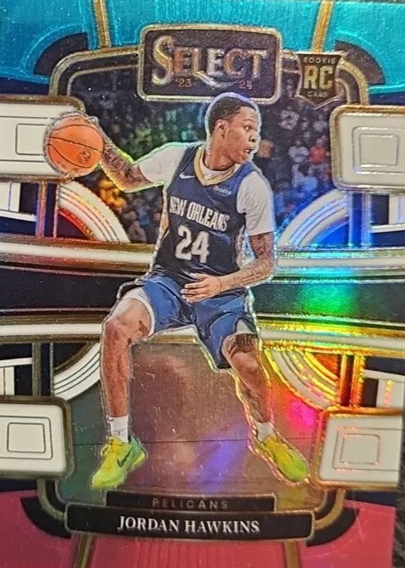 JORDAN HAWKINS 2023-24 PANINI SELECT #72 TEAL WHITE PINK PRIZM ROOKIE RC 08/49