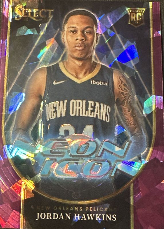 2023 Select Neon Icons Purple Cracked Ice Prizm /75 Jordan Hawkins #25 Rookie RC