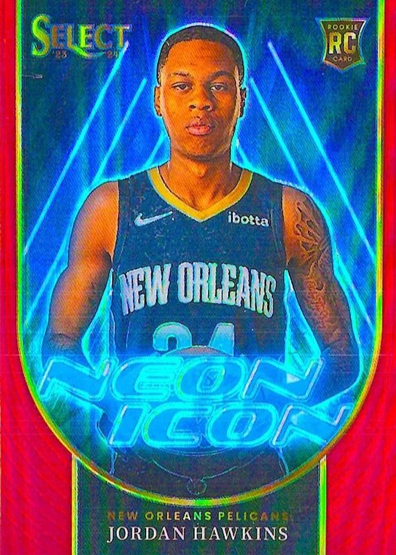 JORDAN HAWKINS 2023-24 SELECT NEON ICON RC 25 RED PRIZM PELS!