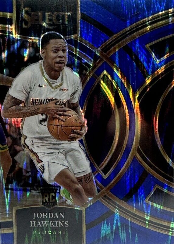 JORDAN HAWKINS 2023-24 Select Premier Blue Flash Prizm RC Rookie 81/99