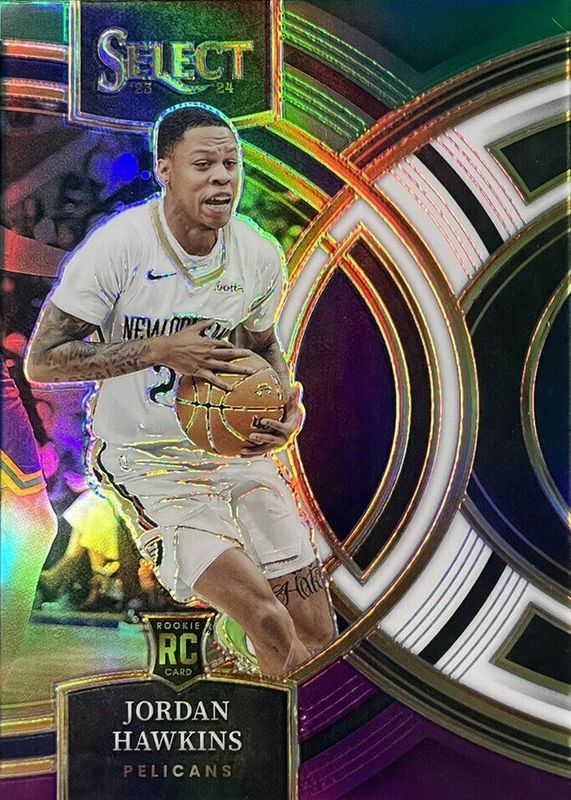 JORDAN HAWKINS 2023-24 SELECT PREMIER LEVEL ROOKIE GREEN WHITE PURPLE Q0797