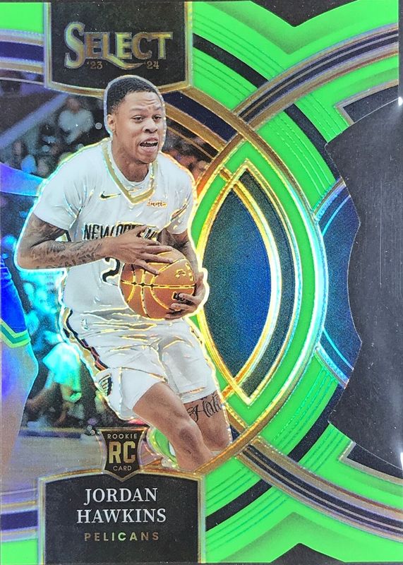 JORDAN HAWKINS 2023-24 SELECT PREMIER ROOKIE NEON GREEN DIE CUT RC /75 Q1569