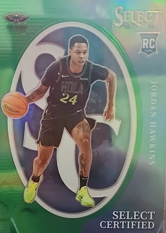 2023-24 PANINI SELECT JORDAN HAWKINS SELECT CERTIFIED GREEN PRIZM RC ROOKIE