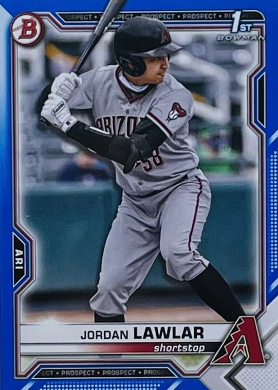 The Jordan Lawlar 2021 Bowman Draft #BD-194 Blue /150 (1st) card in Raw condition has not changed in price in the last 30 days and was last sold for $3.75 .