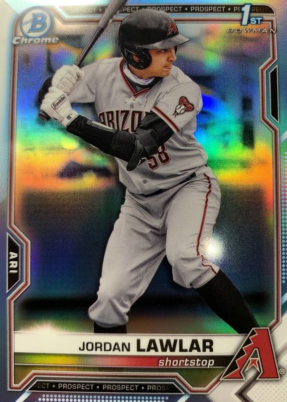 The Jordan Lawlar 2021 Bowman Draft #BDC-194 Chrome - Sky Blue Refractor (1st) card in Raw condition has not changed in price in the last 30 days and was last sold for $2.25 .